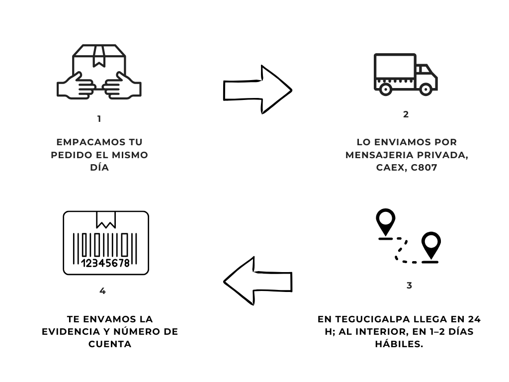 En Tegucigalpa entregamos en 24 horas; al resto del país tarda de 1 a 2 días hábiles.